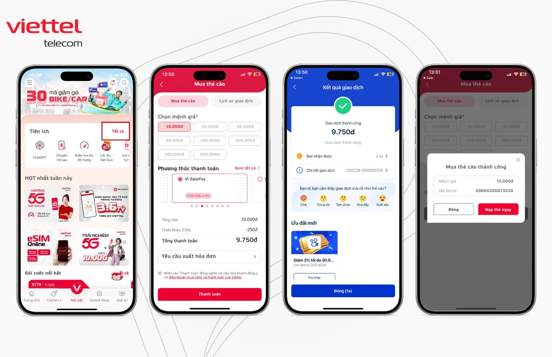 My Viettel là “trợ lý viễn thông” quen thuộc với người dùng Viettel. Việc nạp tiền eSIM qua ứng dụng này không chỉ nhanh gọn mà còn đi kèm nhiều ưu đãi như tích điểm Viettel++, hoàn tiền, giảm giá mỗi tuần.