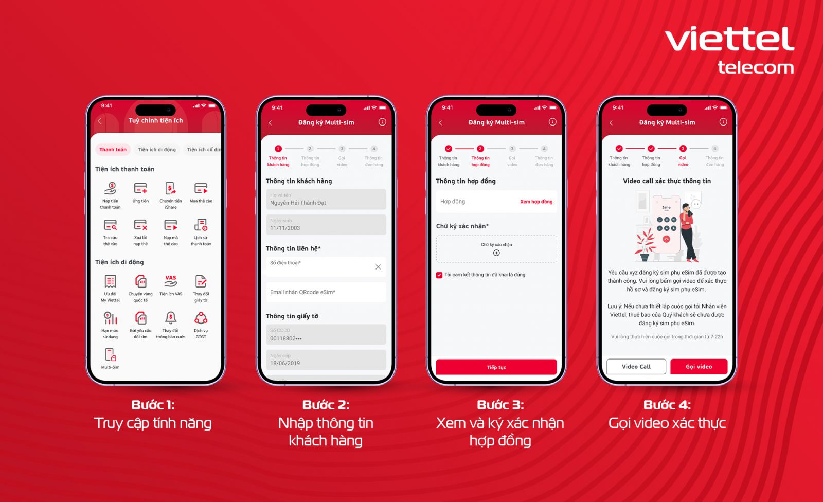 Giờ đây, bạn có thể thực hiện việc đăng ký, hủy hoặc tìm kiếm SIM phụ MultiSim ngay trên ứng dụng My Viettel mà không cần đến cửa hàng. Chỉ cần điện thoại hỗ trợ eSIM, giấy tờ hợp lệ và có tài khoản ngân hàng là bạn đã có thể quản lý MultiSim thành công.