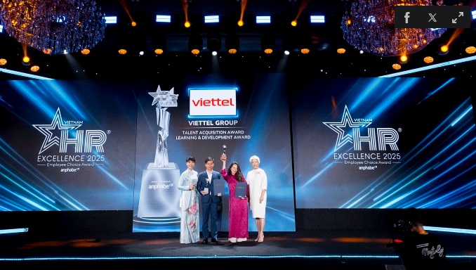 Ngày 22/4, lễ trao giải HR Excellence Awards 2025 diễn ra tại TP HCM, do Anphabe tổ chức. Ở hạng mục "Thu hút nhân tài", ban tổ chức đánh giá Viettel khẳng định sức hút với nguồn nhân lực chất lượng cao nhờ quy mô hoạt động rộng khắp trong và ngoài nước, cùng cơ hội nghề nghiệp đa dạng trong các lĩnh vực: viễn thông, công nghệ thông tin, nghiên cứu phát triển, kinh doanh và đầu tư.