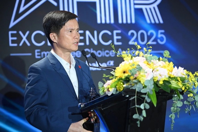 Đại diện Viettel lên nhận hai giải thưởng tại HR Excellence Awards 2025 diễn ra tại TP HCM.