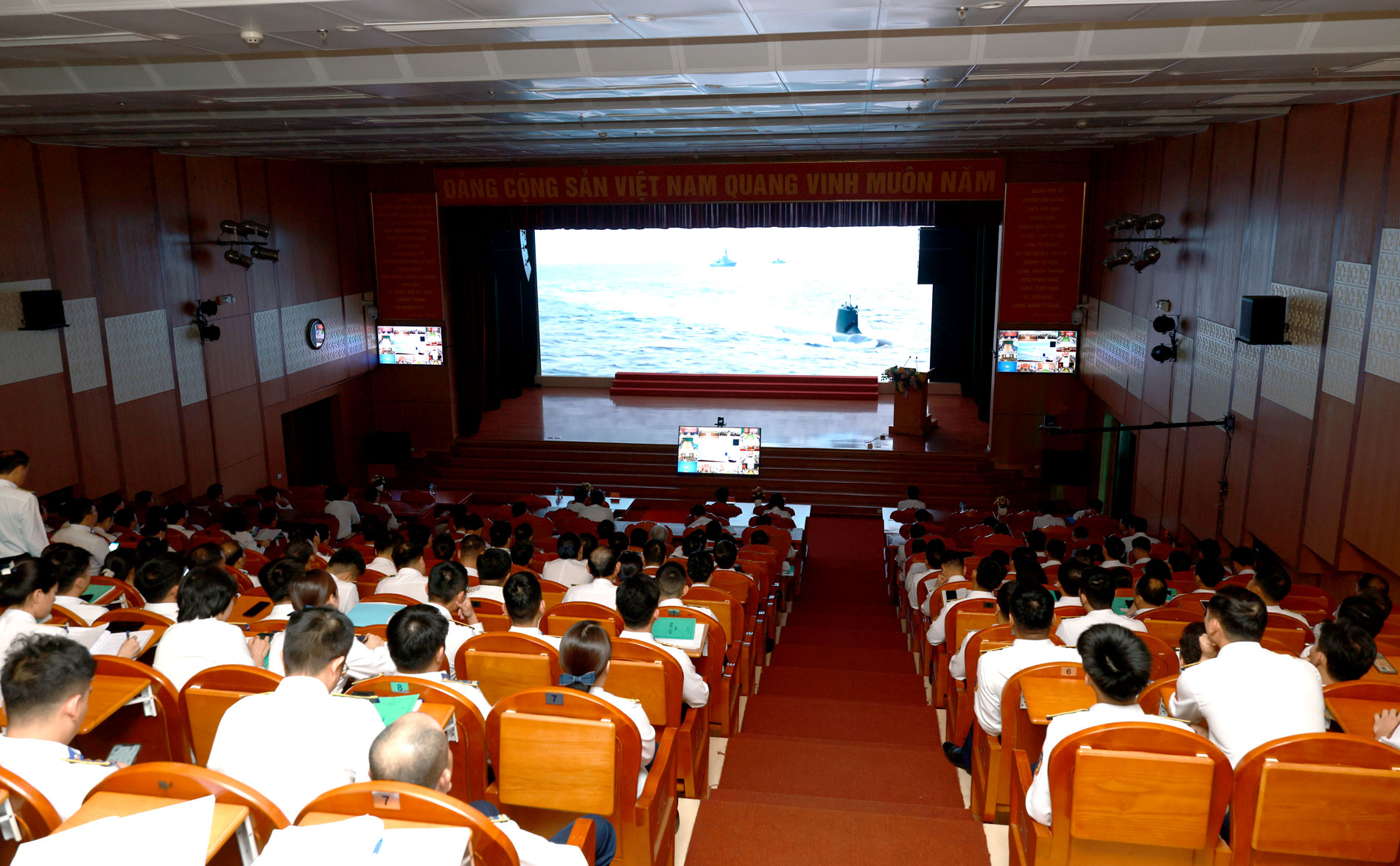 Cán bộ, nhân viên Cảnh sát biển Việt Nam tại các điểm cầu xem băng hình tổng hợp do Cục Khoa học Quân sự/Bộ Quốc phòng sản xuất tháng 3 năm 2026.