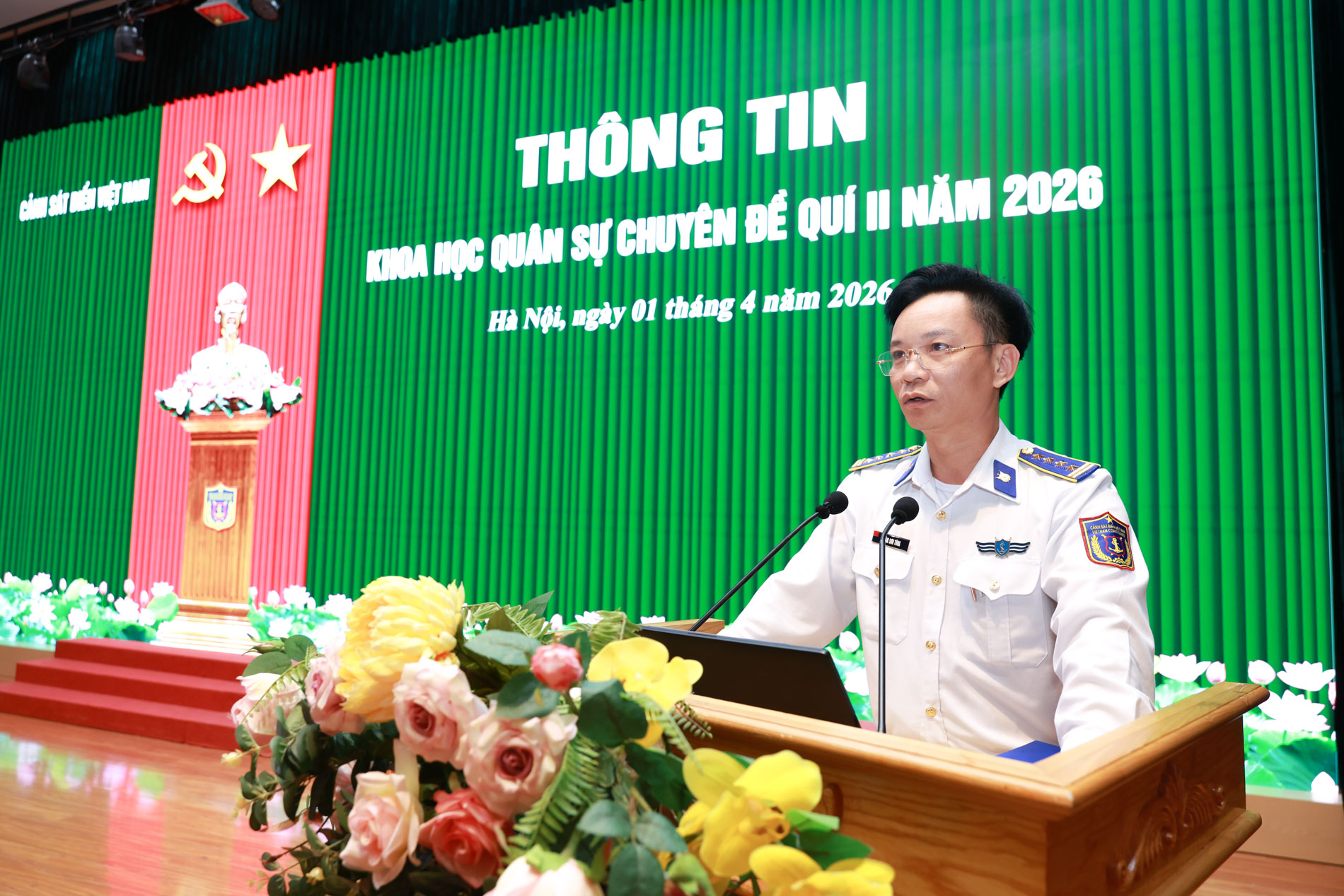 Chiều 1/4, Cảnh sát biển Việt Nam tổ chức Hội nghị thông tin khoa học quân sự chuyên đề Quý II năm 2026. Đại tá Lâm Sơn Tùng - Phó Tham mưu trưởng Cảnh sát biển Việt Nam chủ trì Hội nghị.
