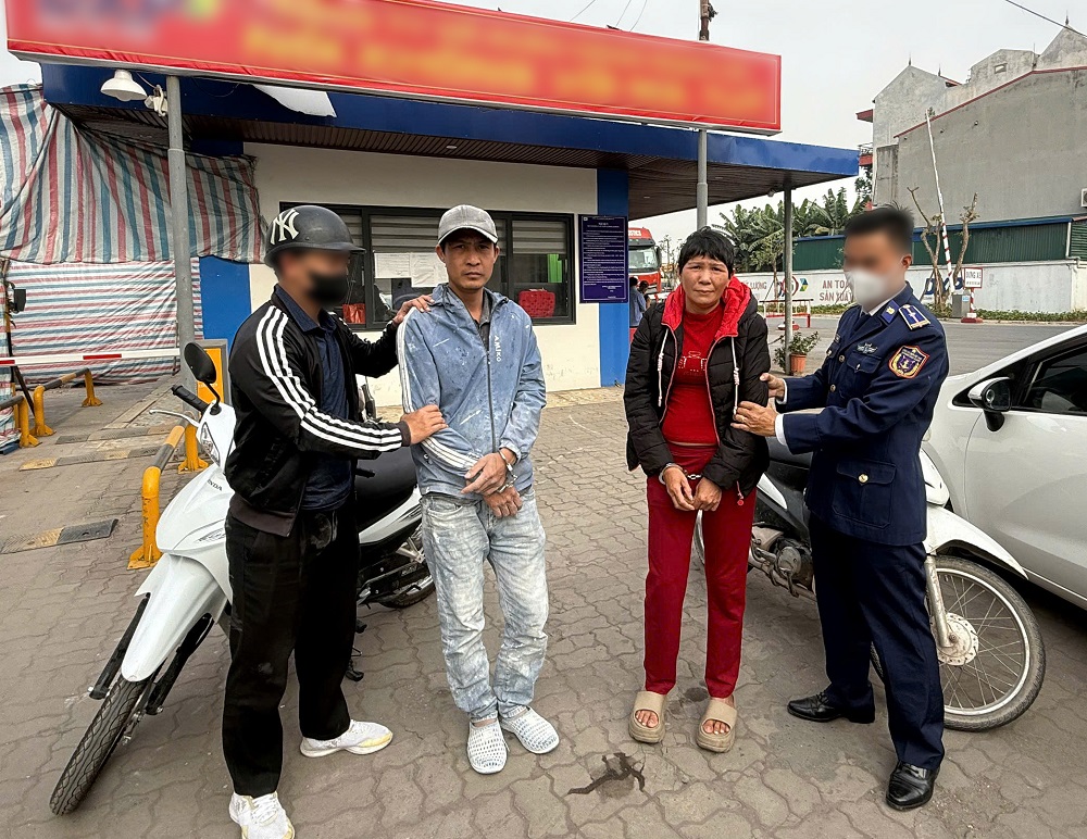 Đối tượng Hà Thị Ngân và Lâm Văn Phượng tại thời điểm bị bắt giữ.