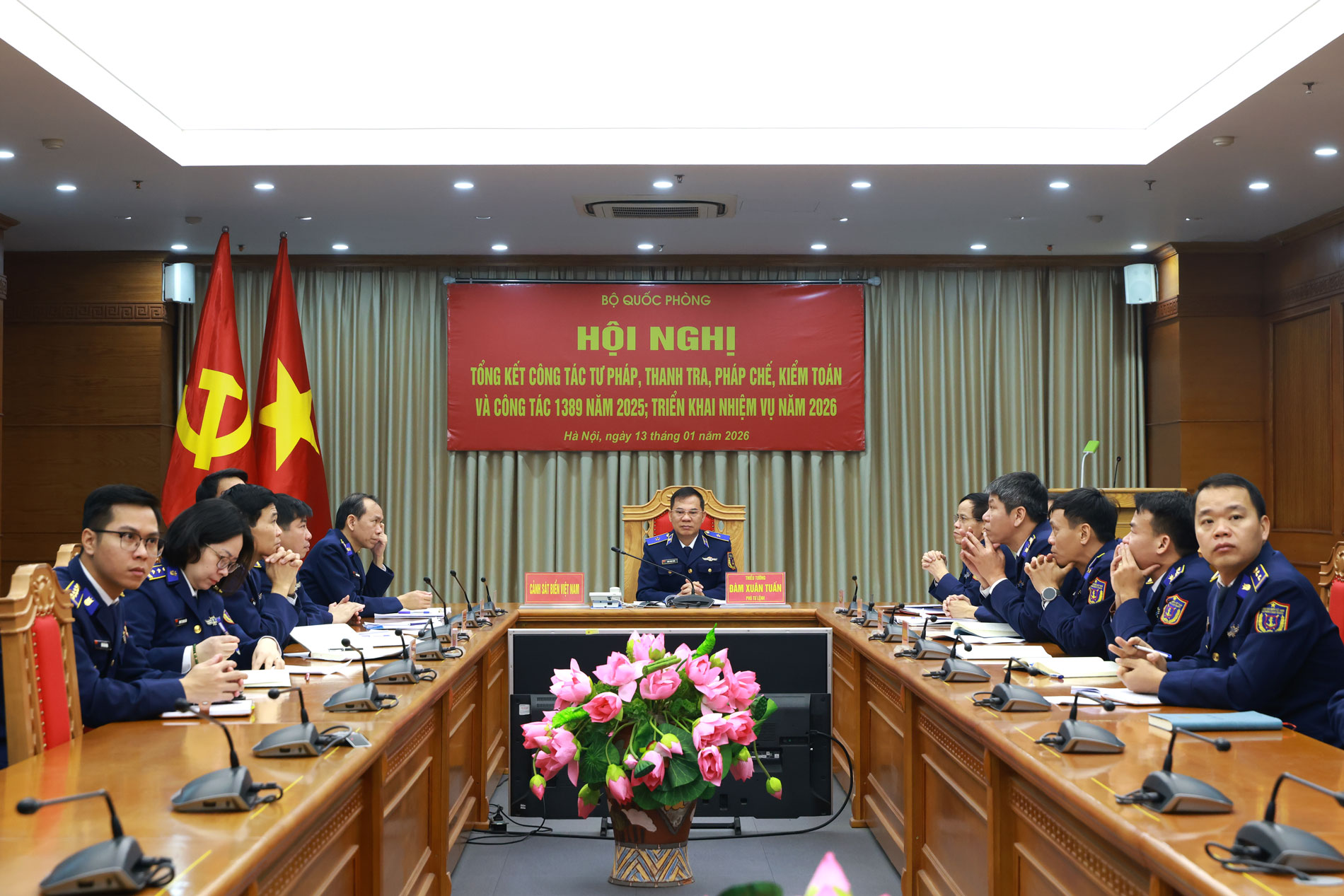 Sáng 13/1, Bộ Quốc phòng tổ chức Hội nghị tổng kết công tác tư pháp, thanh tra, pháp chế, kiểm toán và công tác 1389 năm 2025. Thượng tướng Võ Minh Lương - Ủy viên Trung ương Đảng, Ủy viên Thường vụ Quân ủy Trung ương, Thứ trưởng Bộ Quốc phòng, Trưởng Ban chỉ đạo 1389 Bộ Quốc phòng chủ trì Hội nghị.