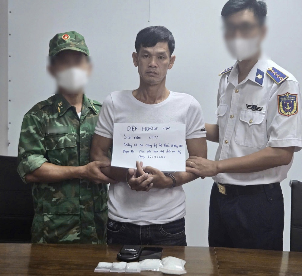 Cụ thể, lực lượng chức năng đã bắt giữ đối tượng Diệp Hoàng Hải (sinh năm 1973, trú tại phường Xuân Hòa, thành phố Hồ Chí Minh) cùng tang vật mang theo trên người là 5 bịch nilon, bên trong có chứa các hạt tinh thể màu trắng, kích thước không đồng nhất, Hải khai nhận đó là ma túy đá. Cùng với đó, lực lượng chức năng thu giữ 1 điện thoại di động, 1 cân điện tử, 1 balo cá nhân.
