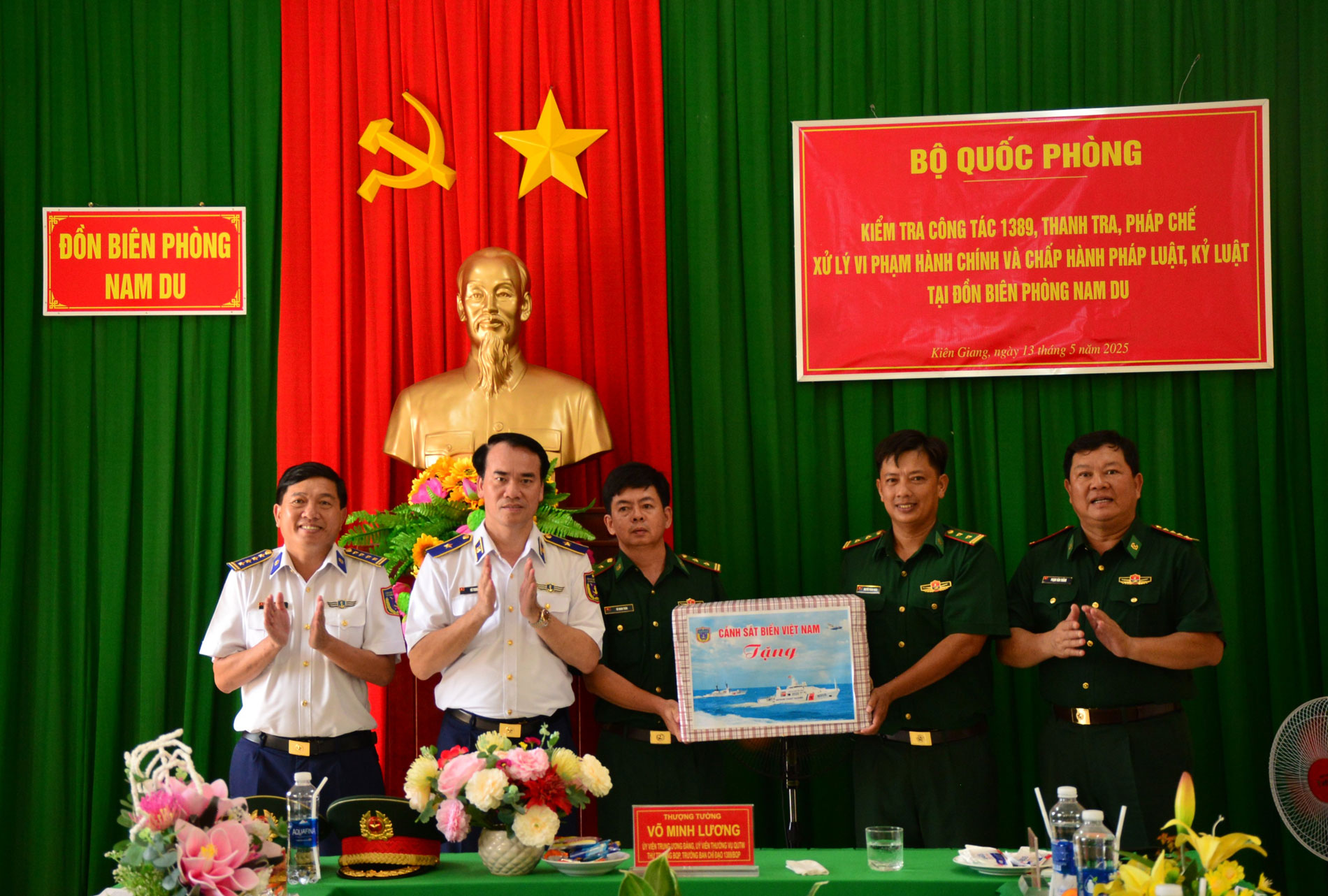 Ngày 14/5, Đoàn công tác Ban Chỉ đạo 1389 Bộ Quốc phòng do Thượng tướng Võ Minh Lương - Ủy viên Trung ương Đảng, Ủy viên Thường vụ Quân ủy Trung ương, Thứ trưởng Bộ Quốc phòng, Trưởng ban chỉ đạo 1389 Bộ Quốc phòng đã đến kiểm tra kết quả thực hiện công tác 1389, thanh tra, pháp chế; phổ biến, giáo dục pháp luật; xử lý vi phạm hành chính; chấp hành pháp luật, kỷ luật đối với Bộ Tư lệnh Vùng Cảnh sát biển 4; Bộ Tư lệnh Vùng 5 Hải quân và một số đơn vị thuộc Bộ Chỉ huy Bộ đội Biên phòng tỉnh Kiên Giang. Tham gia đoàn công tác có đồng chí Thiếu tướng Vũ Trung Kiên - Phó Tư lệnh Pháp luật Cảnh sát biển Việt Nam.