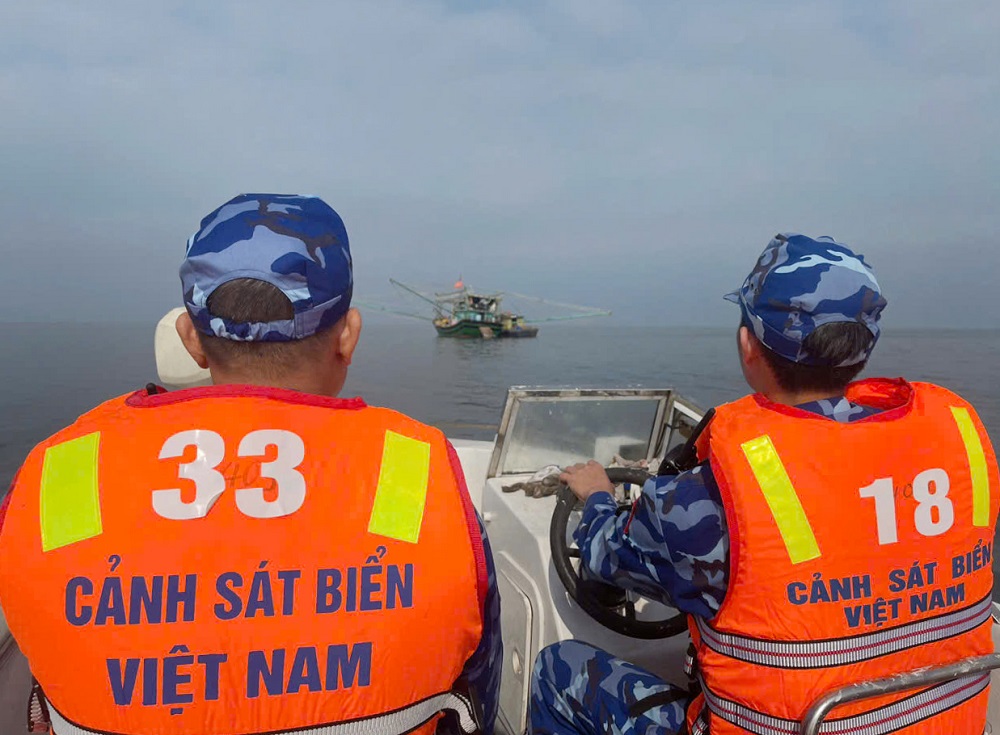 Lực lượng chức năng Hải đoàn 11 cơ động tiếp cận, kiểm tra tàu cá đang hoạt động trên vùng biển vịnh Bắc Bộ.