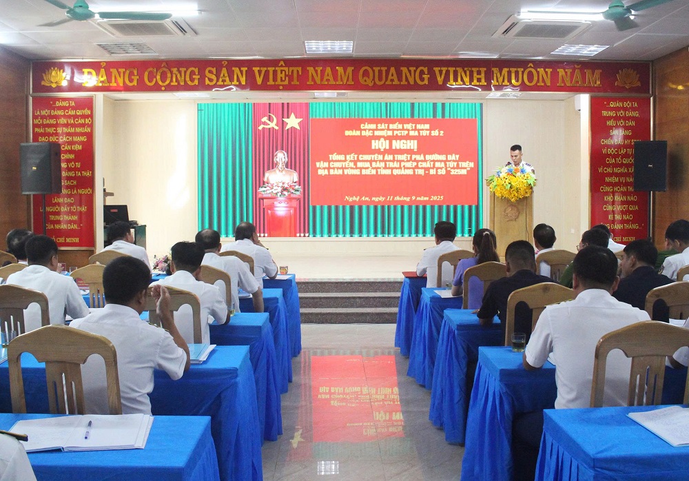 Ngày 11/9, Đoàn Đặc nhiệm PCTP ma túy số 2 tổ chức Hội nghị tổng kết chuyên án mang bí số 325M về triệt phá đường dây vận chuyển, mua bán trái phép chất ma túy trên địa bàn vùng biển tỉnh Quảng Trị. Trung tướng Lê Quang Đạo - Tư lệnh Cảnh sát biển Việt Nam dự và chỉ đạo Hội nghị.