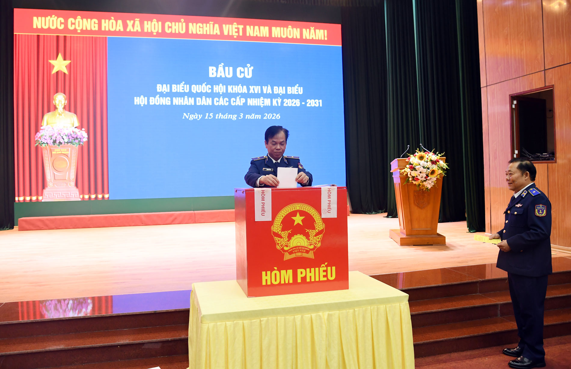 Thủ trưởng Bộ Tư lệnh Vùng Cảnh sát biển 1 tiến hành bỏ phiếu bầu đại biểu Quốc hội khóa XVI và đại biểu HĐND các cấp nhiệm kỳ 2026 - 2031.