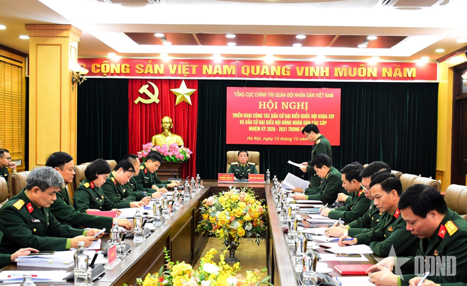Ngày 12/12, Tổng cục Chính trị tổ chức Hội nghị triển khai công tác bầu cử đại biểu Quốc hội khóa XVI và bầu cử đại biểu Hội đồng nhân dân (HĐND) các cấp nhiệm kỳ 2026 - 2031 trong Quân đội. Thượng tướng Trương Thiên Tô - Phó Chủ nhiệm Tổng cục Chính trị chủ trì Hội nghị.