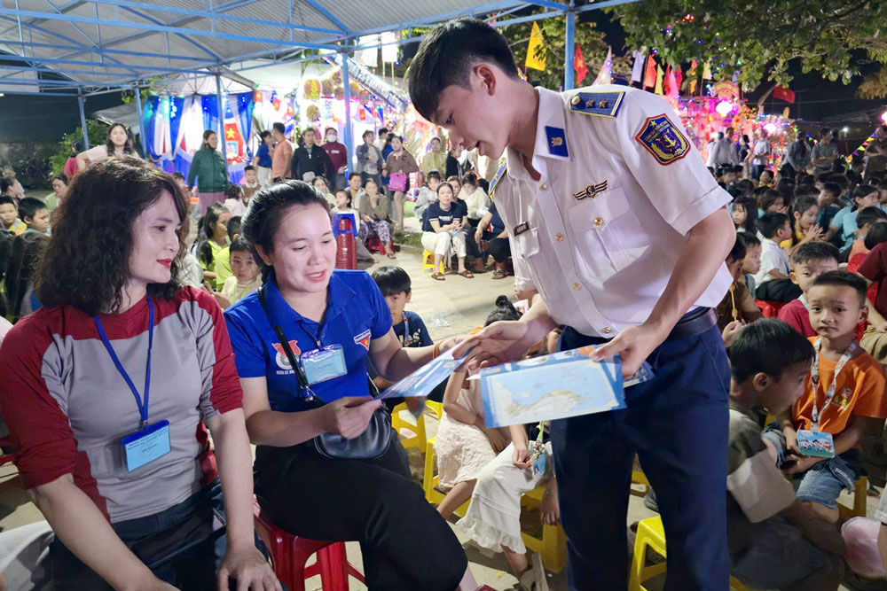 Cán bộ Hải đội 23 phát tờ rơi tuyên truyền.