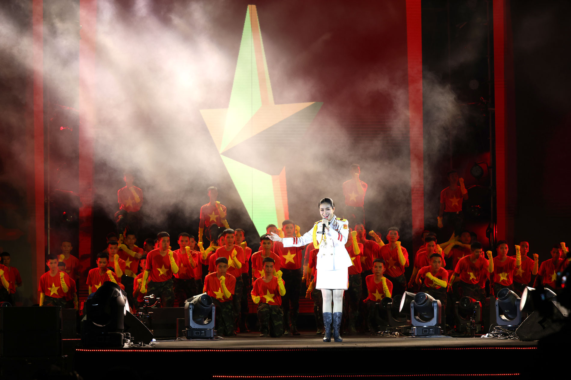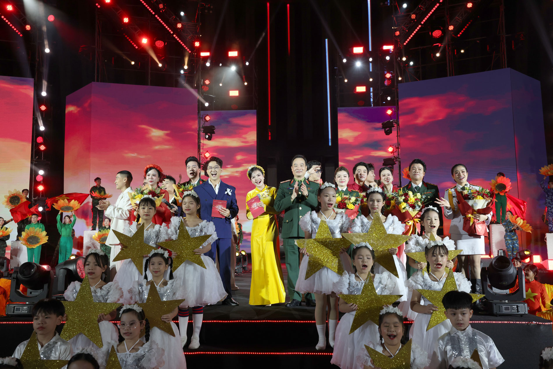 Trong chương trình, không gian ngoài trời của Bảo tàng Lịch sử Quân sự Việt Nam được biến hóa thành một sân khấu nghệ thuật hoành tráng. Sân khấu được dàn dựng công phu. Từ hình ảnh lá cờ đỏ sao vàng tung bay, những khung cửa thời gian mở ra lịch sử, đến màn kết "Dưới cờ vinh quang" hùng tráng... tất cả được hỗ trợ bởi công nghệ âm thanh, ánh sáng hiện đại bậc nhất, hứa hẹn mang đến cho khán giả những trải nghiệm thị giác và thính giác mãn nhãn, khơi dậy lòng tự hào dân tộc mãnh liệt.