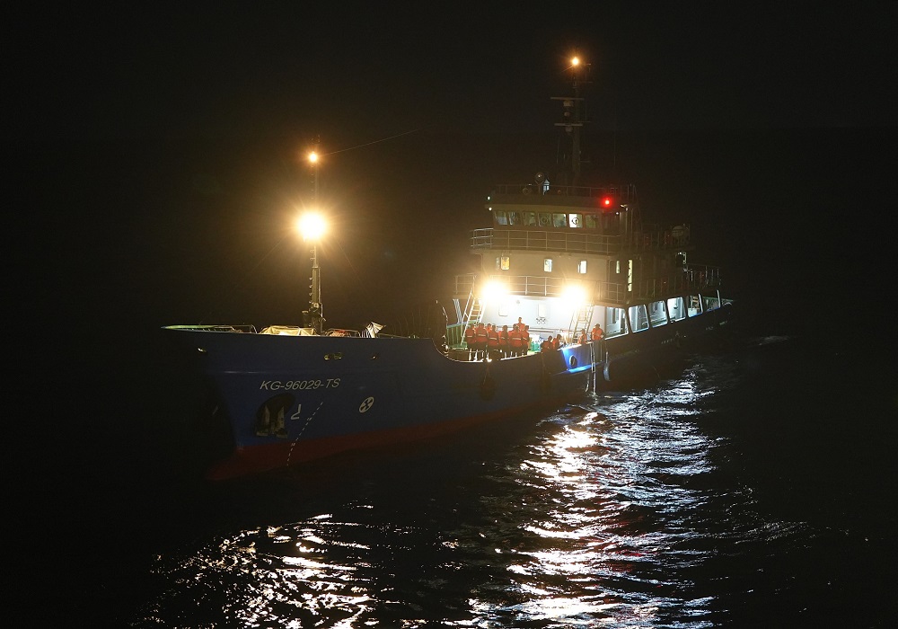 Chuyển quà Tết từ tàu CSB 8005 sang tàu KG 96029-TS trong đêm.